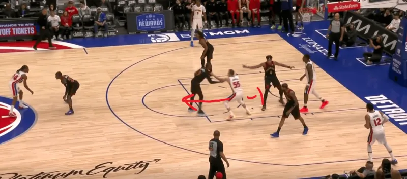 这一次面对杜伦和詹金斯的挡拆发起,珀尔特尔没有选择提上延误,詹金斯利用对手站位来到罚球线直接中距离惩罚对手策略: