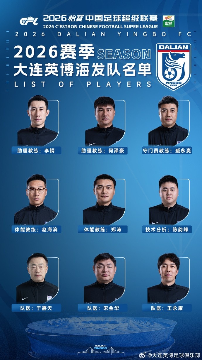 3月5日讯 新赛季中超明天拉开帷幕,大连英博官宣新赛季一线队名单,斯坦丘10号、马莱莱11号、朱鹏宇16号、毛伟杰22号。