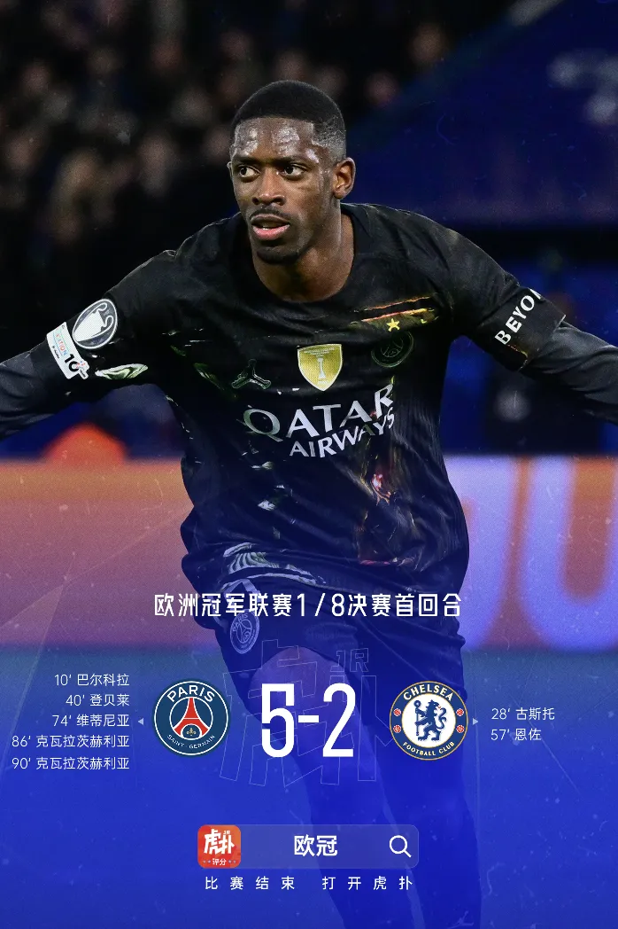 虎扑03月12日讯 欧冠1/8决赛首回合巴黎5-2战胜切尔西的比赛中,克瓦拉茨赫利亚打入两球并贡献一次助攻。