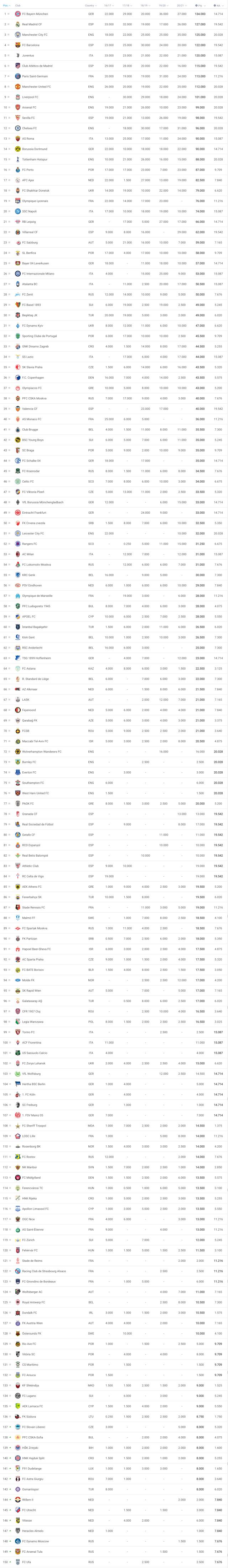 2020-21赛季欧联杯和欧冠决赛战罢,下赛季的欧冠种子席位也得以确定。